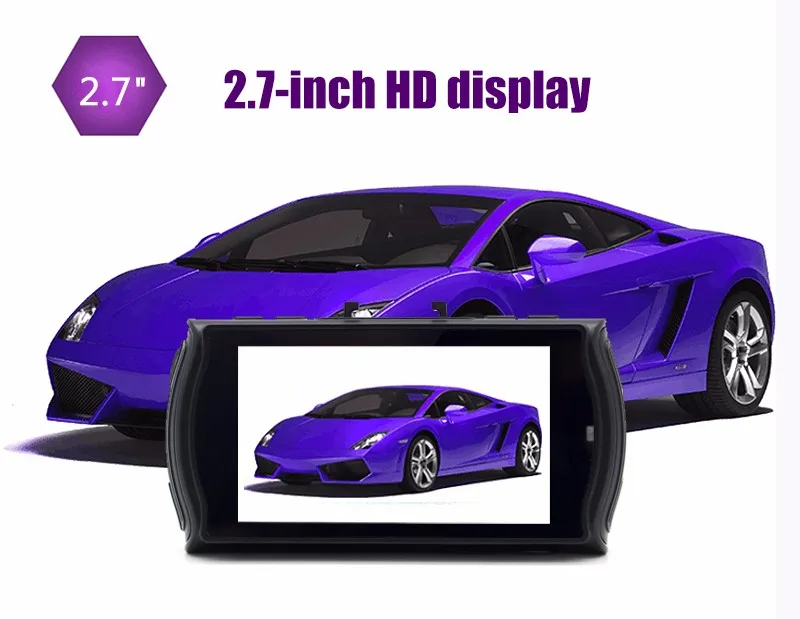 - 2.7 pulgadas de alta resolución LCD, puede ver durante la grabación