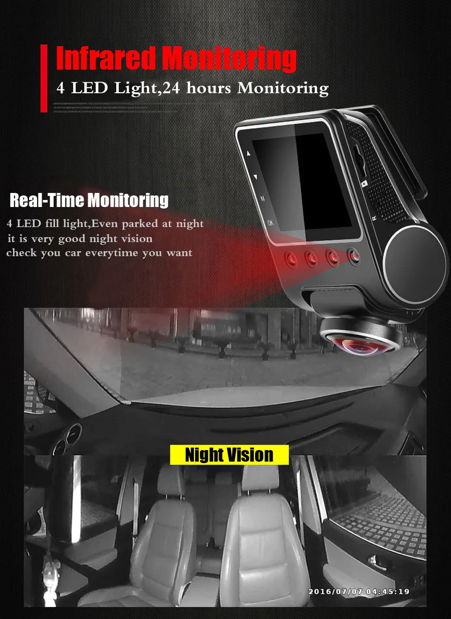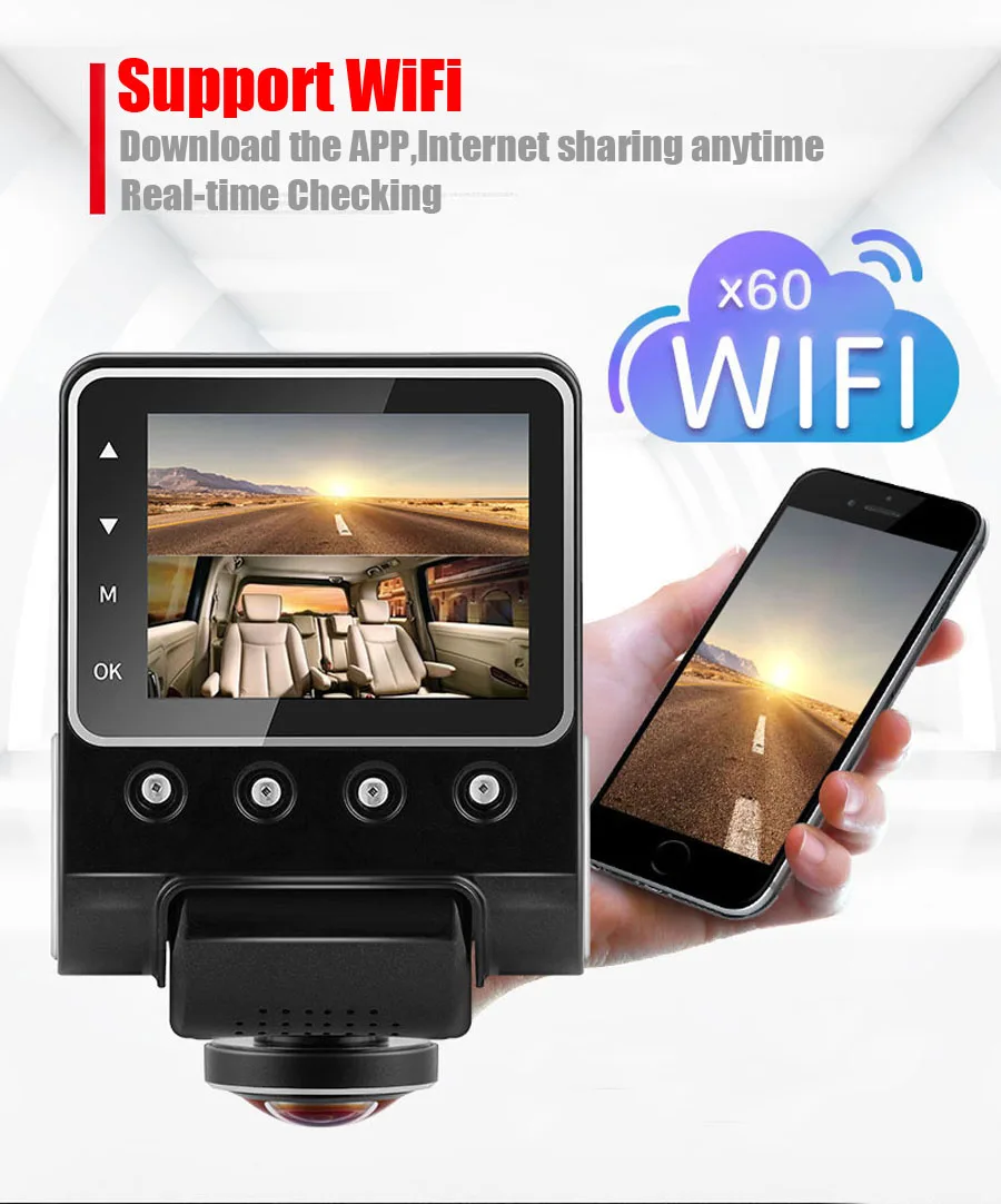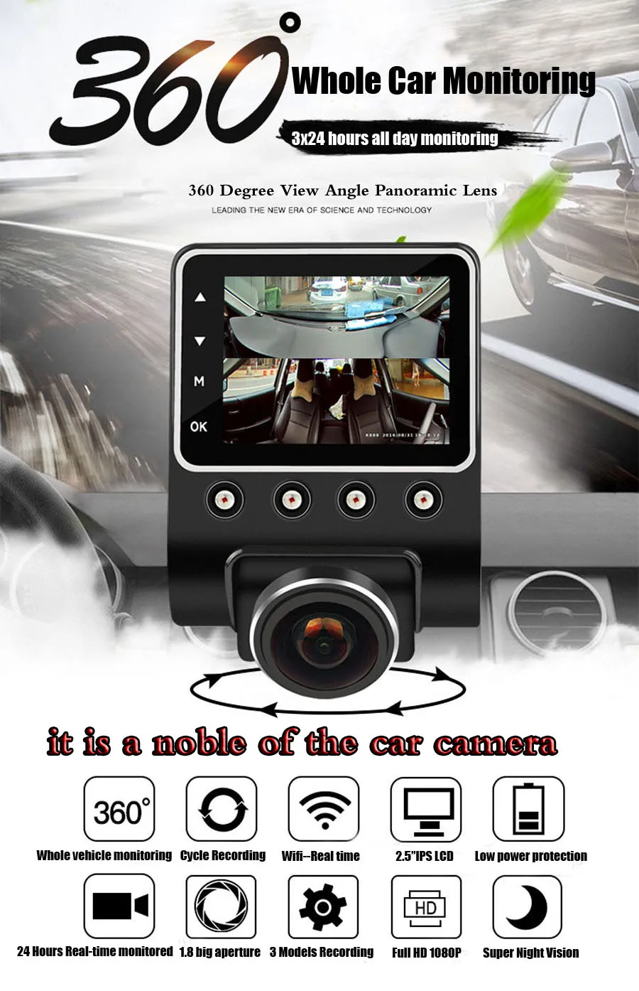 Ángulo de 360 Grados WiFi Cámara Del Coche DVR Grabador de Vídeo Completo HD 1080 P 2.5 " LCD de Visión Nocturna Estupenda Dashcam 24 Horas En tiempo Real Monitore