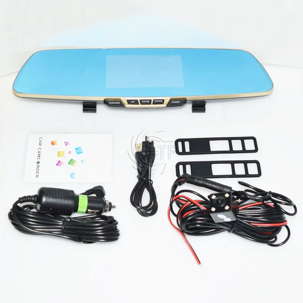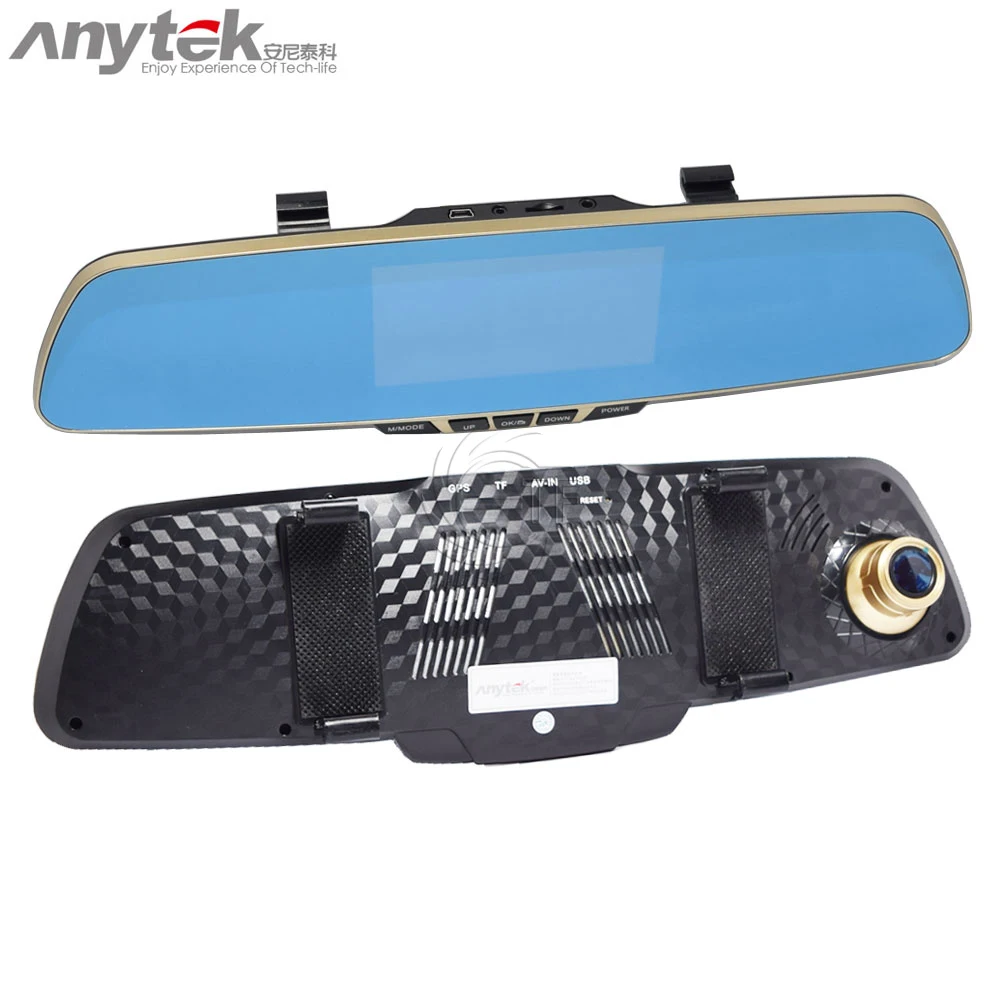 Anytek T6 4.3 Pulgadas 1080 P HD Azul Espejo Retrovisor Del Coche Grabadora de Vídeo DVR Videocámara Dash Doble Lente Dual de La Cámara