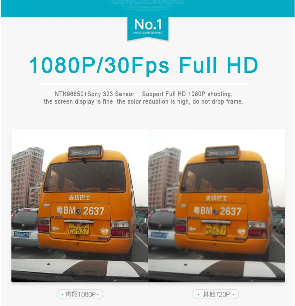 Novatek 96658, Grabación en bucle, potente IC, Grabación en bucle, usted puede fijar el fragmento de vídeo como 1 minuto/2 minutos/3 minutos, sobrescribir los fragmentos grabado antes, si la memoria está llena. apoyo 8G-32G tarjeta Micro SD.