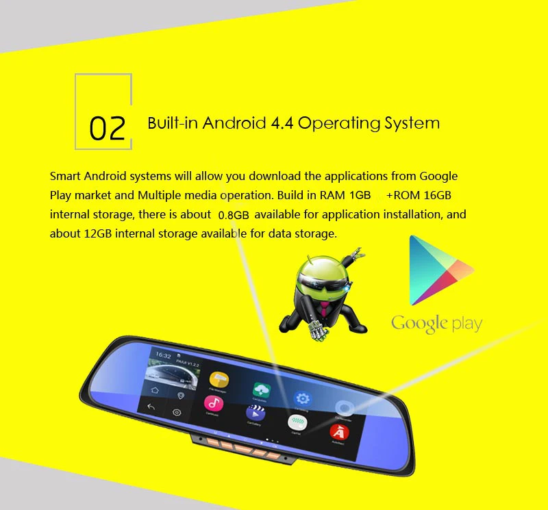 sistemas inteligentes Android le permitirá descargar las aplicaciones de Google Play mercado y operación de Múltiples medios de comunicación. construir en RAM1GB + ROM 16 GB de almacenamiento interno, hay alrededor de 0.8 GB disponibles para la instalación de aplicaciones, y alrededor de 12 GB de almacenamiento interno disponible para almacenamiento de datos.