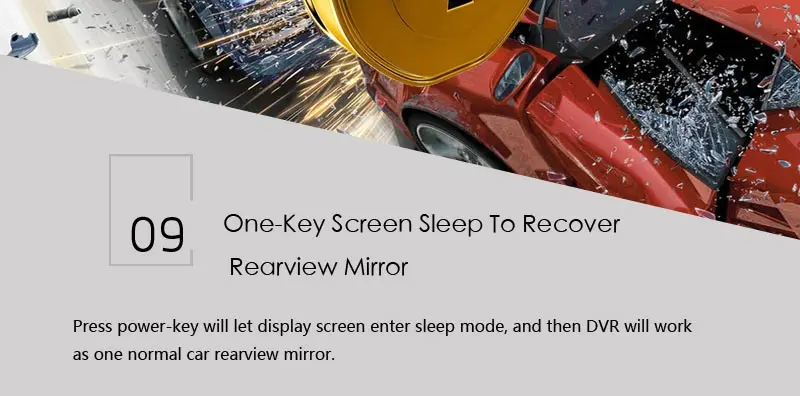 pantalla pulse power-clave permitirá entrar en modo de suspensión, y luego DVR funciona como un espejo retrovisor de coche normal.