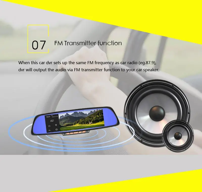 cuando este coche dvr establece la misma frecuencia de FM como la radio del coche (eg.87.9), dvr va a salir el audio a través de la función de transmisor FM para el altavoz del coche.