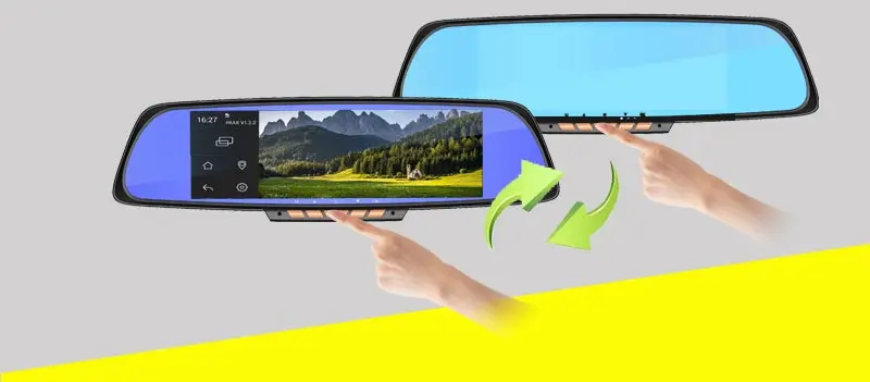 pantalla pulse power-clave permitirá entrar en modo de suspensión, y luego DVR funciona como un espejo retrovisor de coche normal.