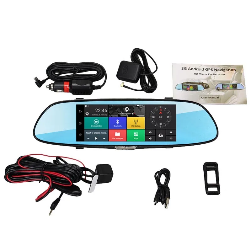 | 1 x Espejo DVR, 1 x Cámara Trasera, 1 x Cargador de Coche, 1 x USB Cable, 1X módulo GPS, 1 x Inglés Manual Del Usuario |
