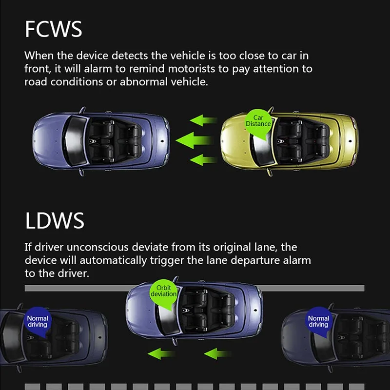 - cuando el dispositivo detecta el vehículo de delante para cerrar, se alarma para recordar a los conductores a prestar atención a las condiciones del camino o anormal de vehículos.