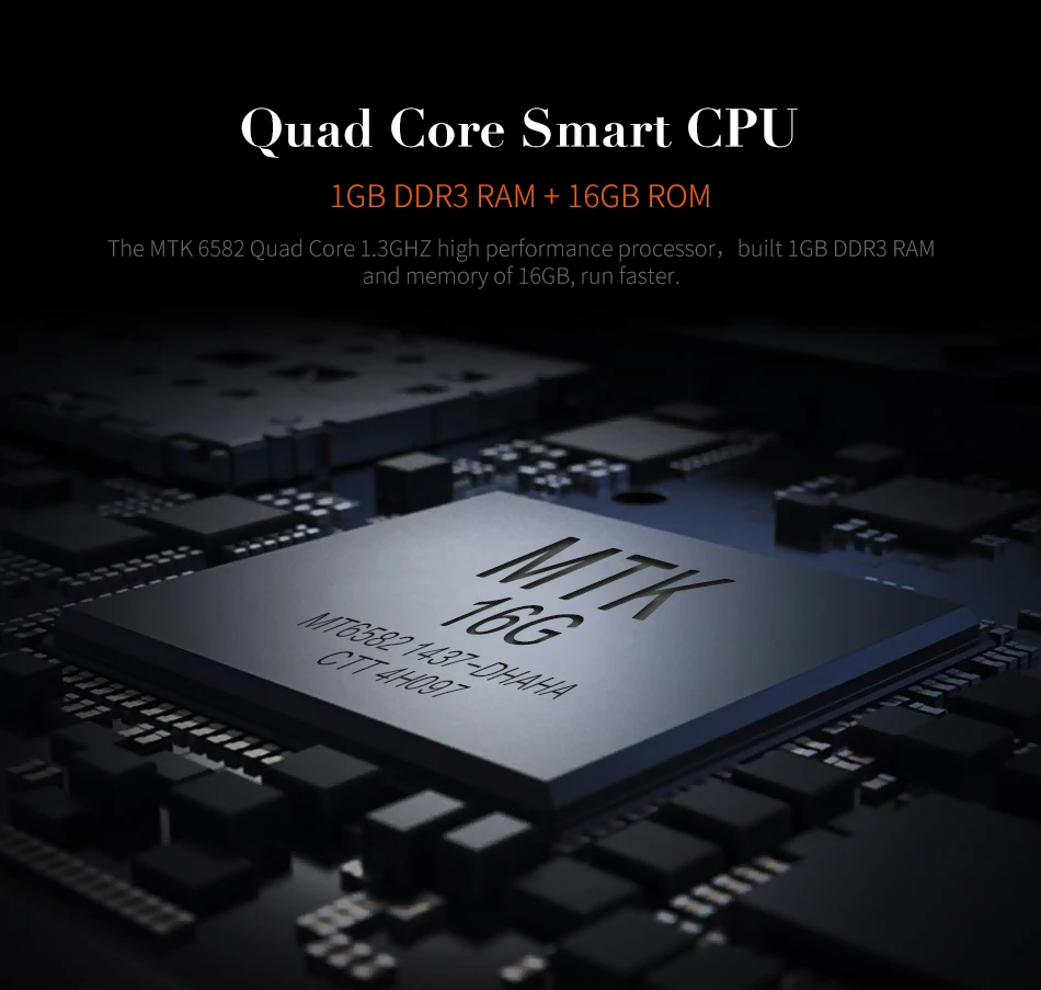 el MT6582 Quad core 1.3 GHZ procesador de alto rendimiento incorpora Android 5.0 piruleta sistemas inteligentes lo convierten en el dvr coche corre más rápido, sin problemas y stablely en comparación con Andorid 4.4.