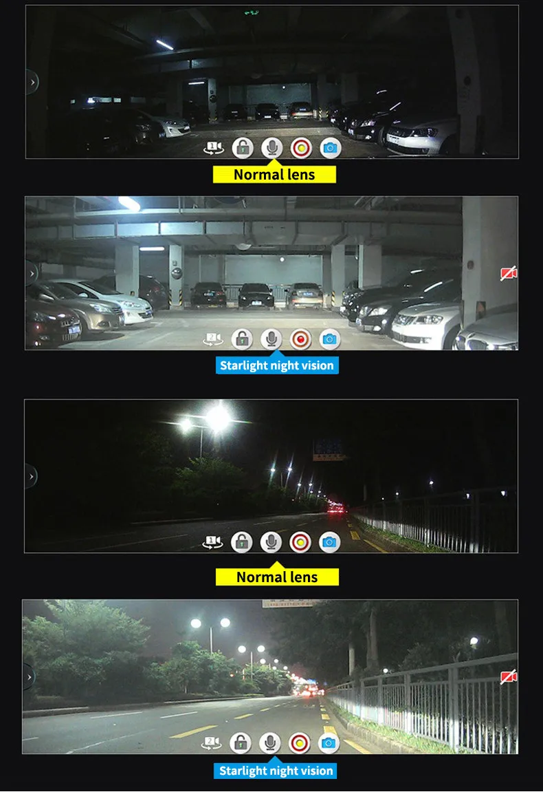 starlight tecnología avanzada con visión nocturna de la lente profesional podría capturar lo que pasó con claridad en la noche oscura, la cámara se cambiará al modo de visión nocturna o de día mediante la detección de las luces ambientales. (otro Coche DVR sólo admiten un día de tiempo de grabación).