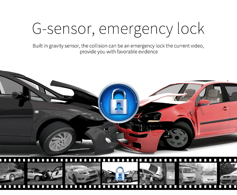 si se produce la colisión de un vehículo, el construir-en el sensor de Choque se bloquea automáticamente el vídeo grabado proporcionar un registro exacto de los acontecimientos.