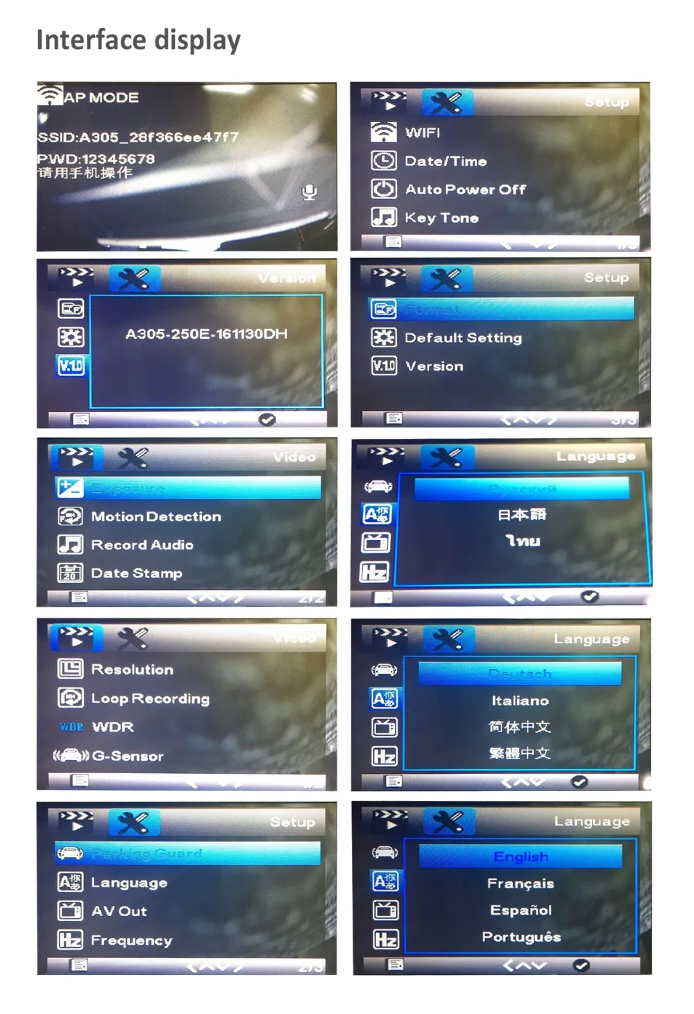 Novatek coche DVR WiFi APP Mini Hidden Cam A305 96658 Completo Sony IMX323 2.45 inch LCD G-sensor HD1080P Video Del Coche Dash Cam